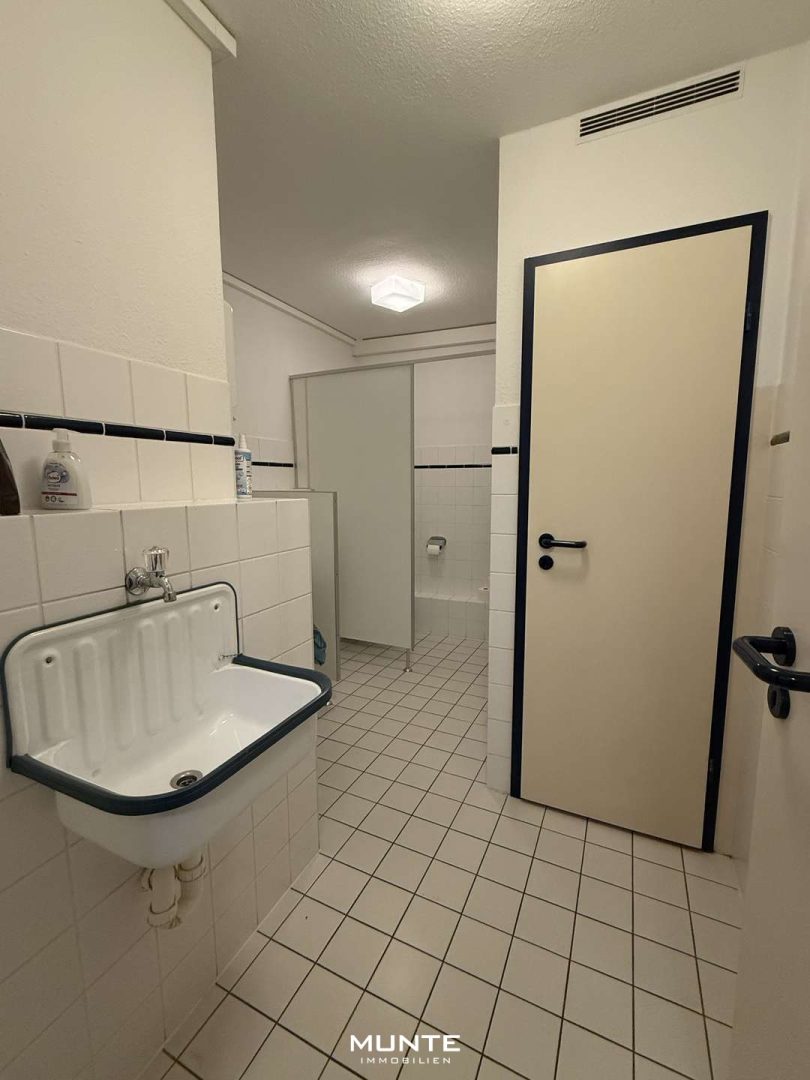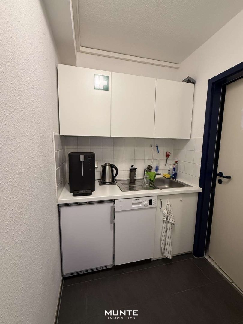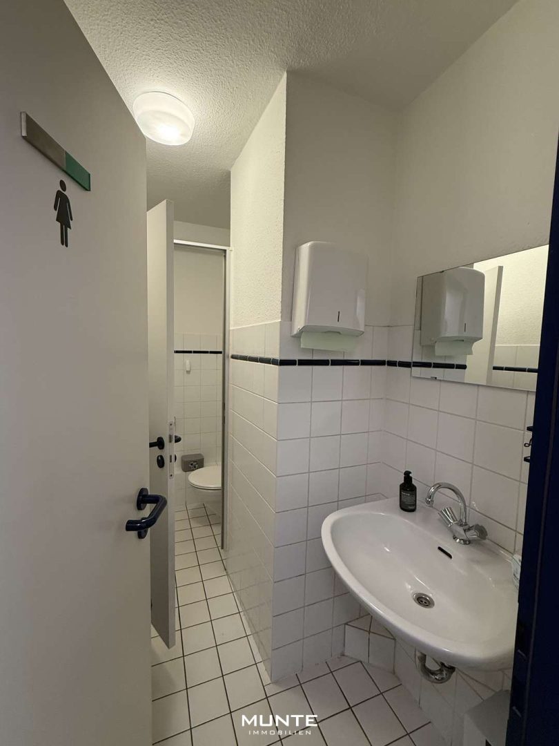 Die Gewerbeeinheit umfasst 5 helle Büros Richtung Fußgängerzone, einen großzügigen Eingangsbereich, eine Teeküche und zwei WCs.