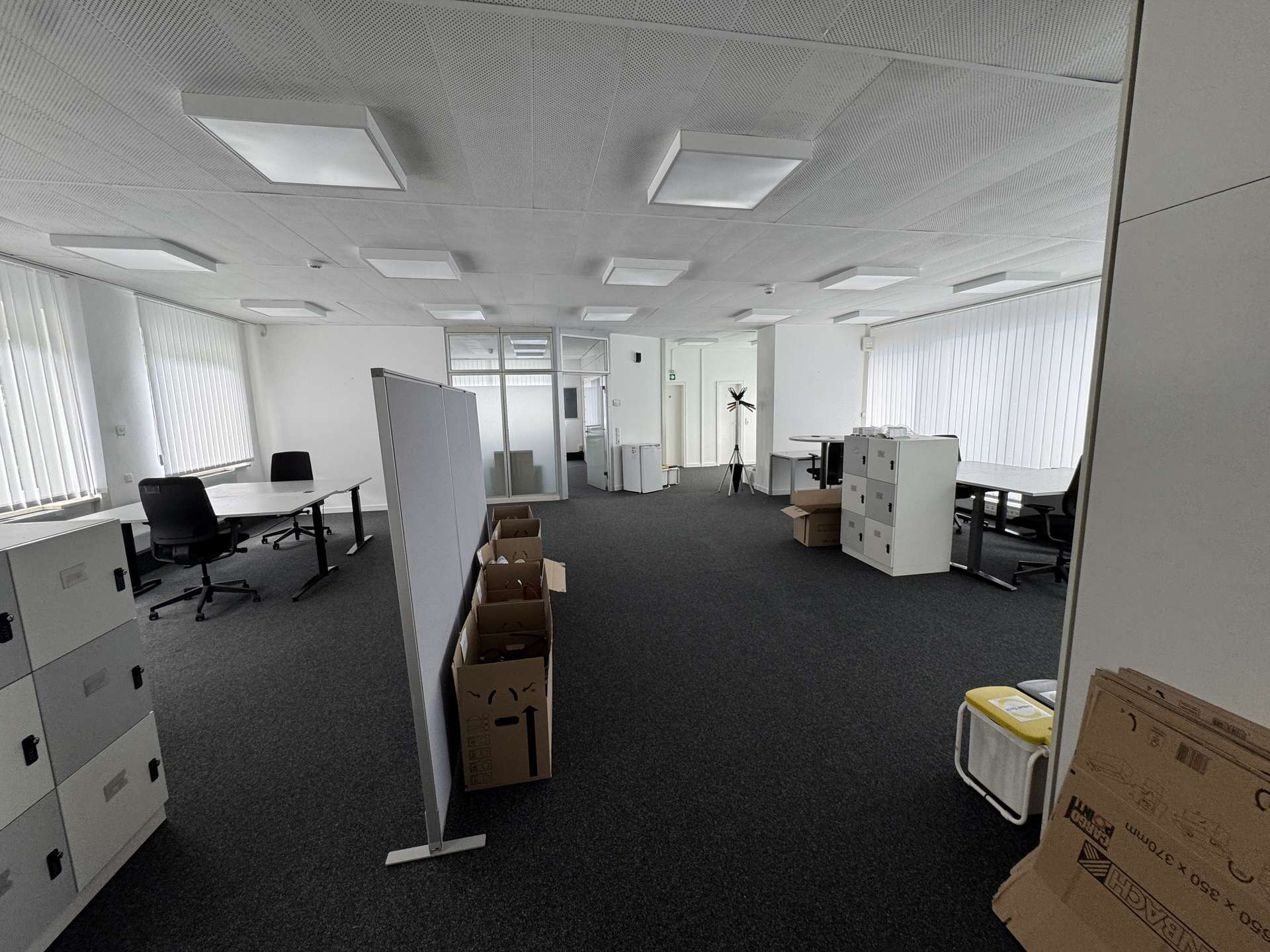 Die angebotene Immobilie ist unterkellert und wurde im Jahr 2018/2019 umfassend saniert (Malerarbeiten, Sanitäranlagen, neue Fenster, Datenverkabelung und Elektrik). Das Gebäude verfügt ebenfalls über eine Brandmeldeanlage. Insgesamt umfassen das 1. Obergeschoss und das 2. Obergeschoss ca. 720 m² vermietbare Fläche. Diese Fläche ist aktuell noch vermietet und kann ab Januar 2026 genutzt werden.