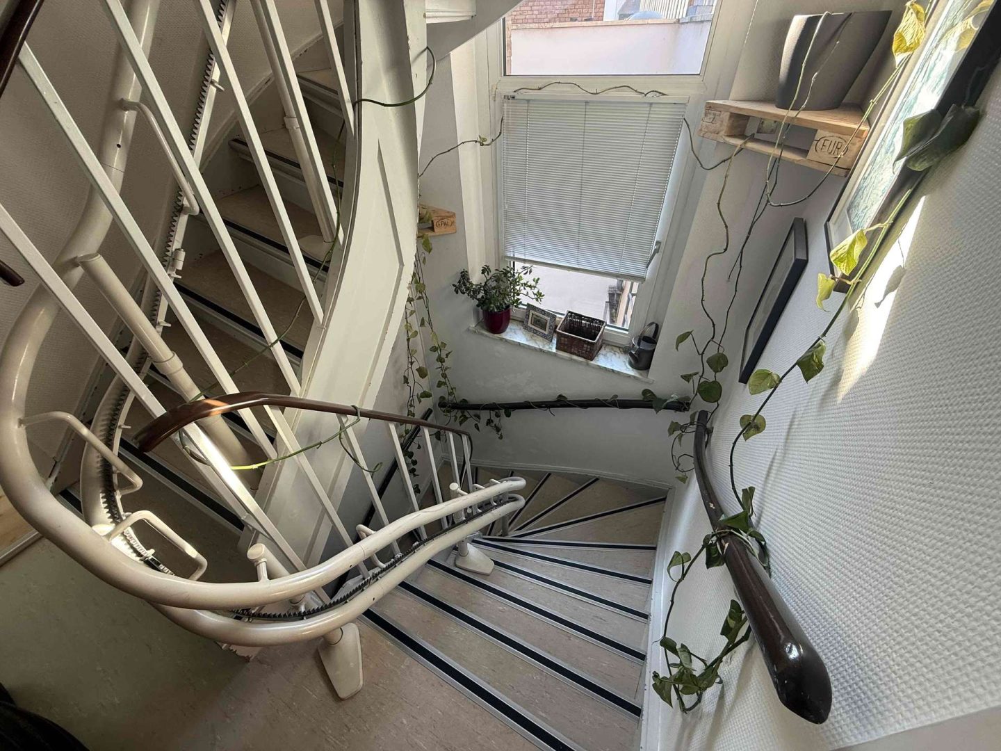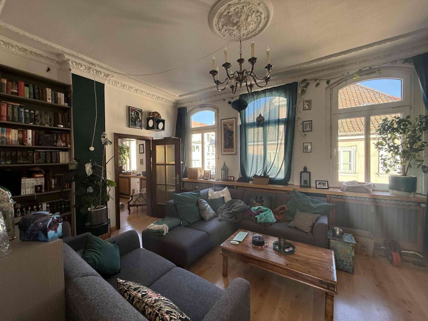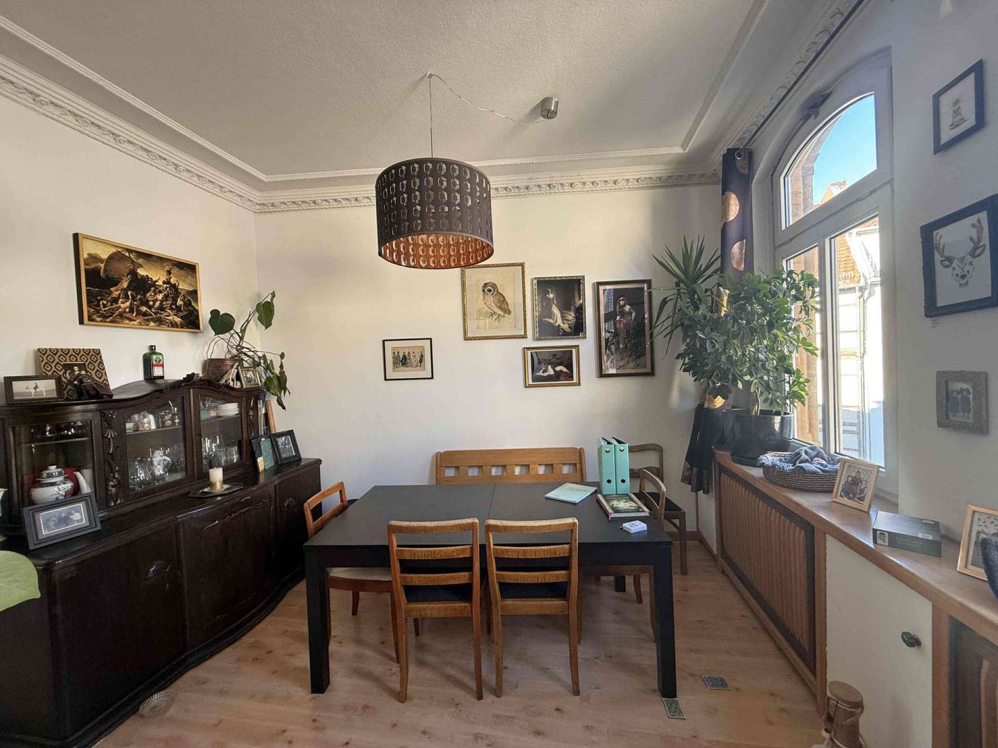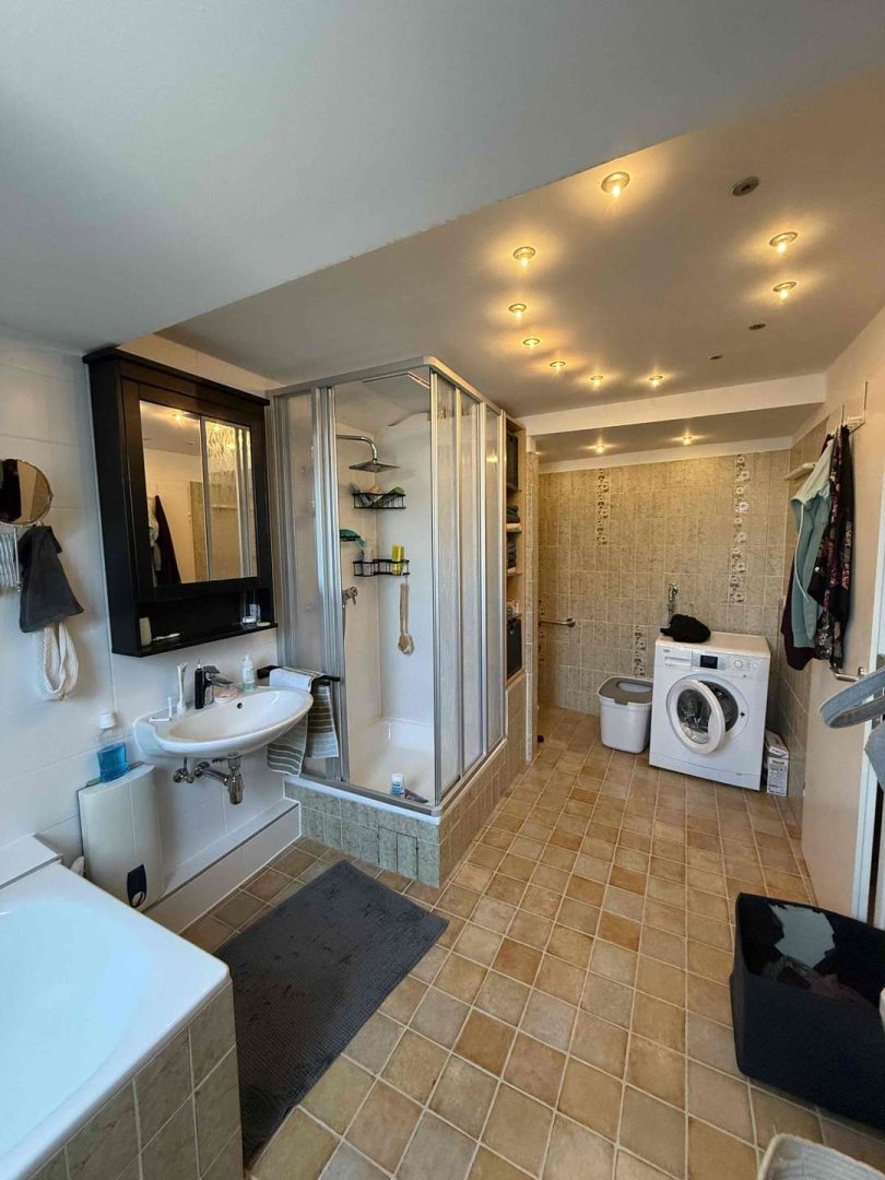 Im 2. und 3. Obergeschoss des Hauses befindet eine gepflegte und zur Zeit vermietete Maisonette-Wohnung von ca. 100 m², deren Wohnungszugang im 1. Obergeschoss liegt und die über einen seitlichen Hauseingang erschlossen wird. Die Wohnung ist gut geschnitten. Sie verfügt über eine moderne Einbauküche, eine kleine Dachterrasse Richtung Innenhof, ein Wannenbad mit separater Dusche, ein Gäste WC, originale Stuckdecken im Wohn- und Esszimmer sowie einen Treppenlift ab Zugang der Wohnung, der zur Zeit nicht genutzt wird. Die Kaltmiete der Wohnung beträgt aktuell 680,- Euro pro Monat.