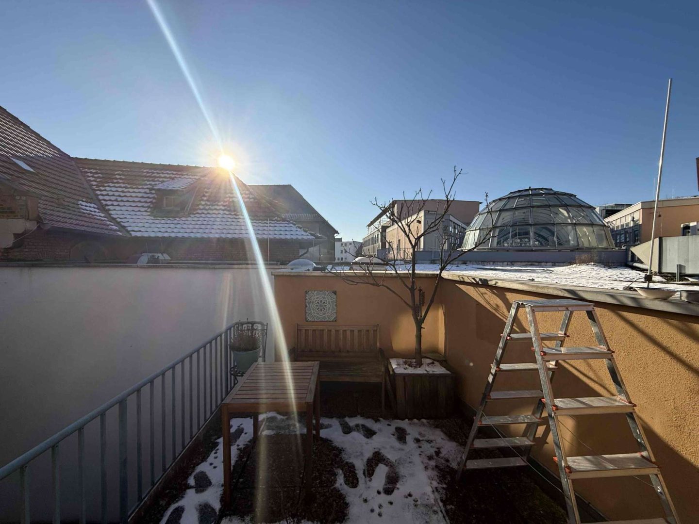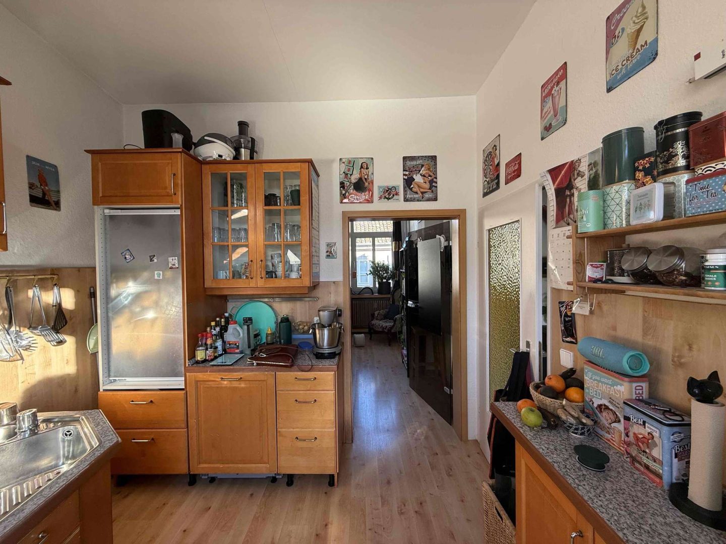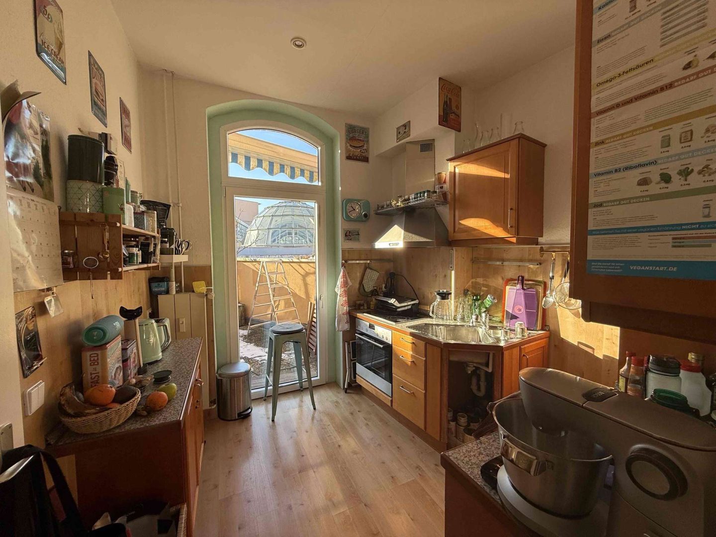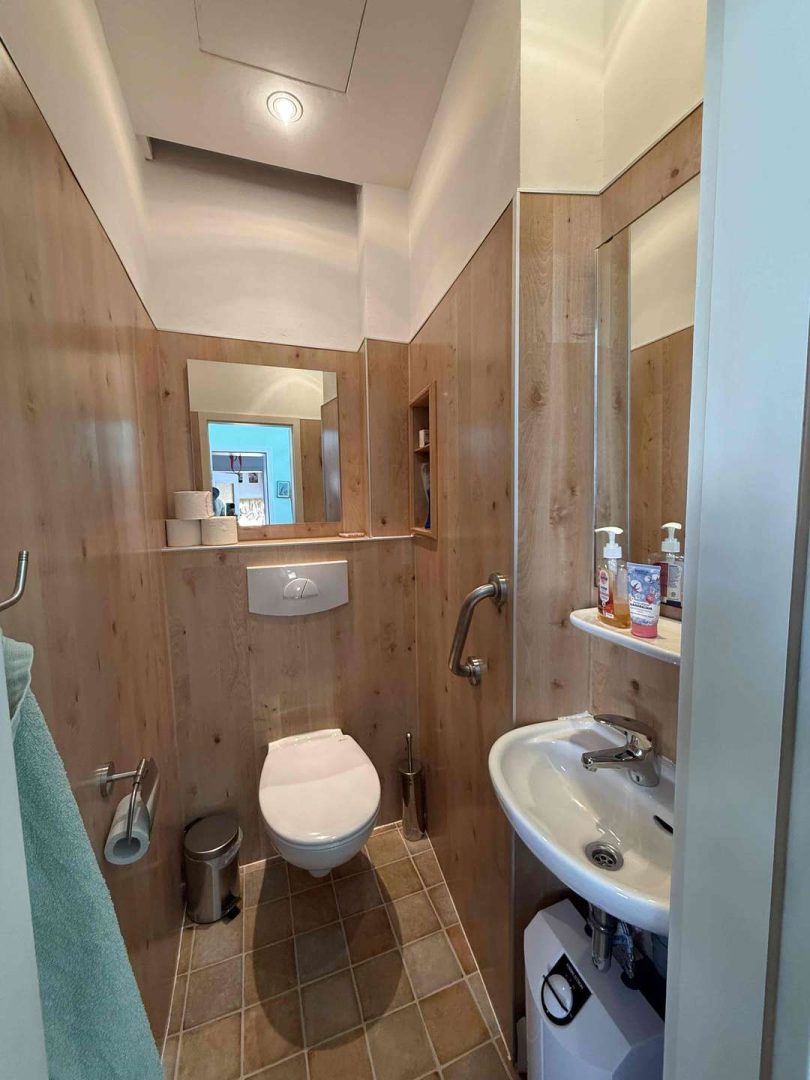 Im 2. und 3. Obergeschoss des Hauses befindet eine gepflegte und zur Zeit vermietete Maisonette-Wohnung von ca. 100 m², deren Wohnungszugang im 1. Obergeschoss liegt und die über einen seitlichen Hauseingang erschlossen wird. Die Wohnung ist gut geschnitten. Sie verfügt über eine moderne Einbauküche, eine kleine Dachterrasse Richtung Innenhof, ein Wannenbad mit separater Dusche, ein Gäste WC, originale Stuckdecken im Wohn- und Esszimmer sowie einen Treppenlift ab Zugang der Wohnung, der zur Zeit nicht genutzt wird. Die Kaltmiete der Wohnung beträgt aktuell 680,- Euro pro Monat.